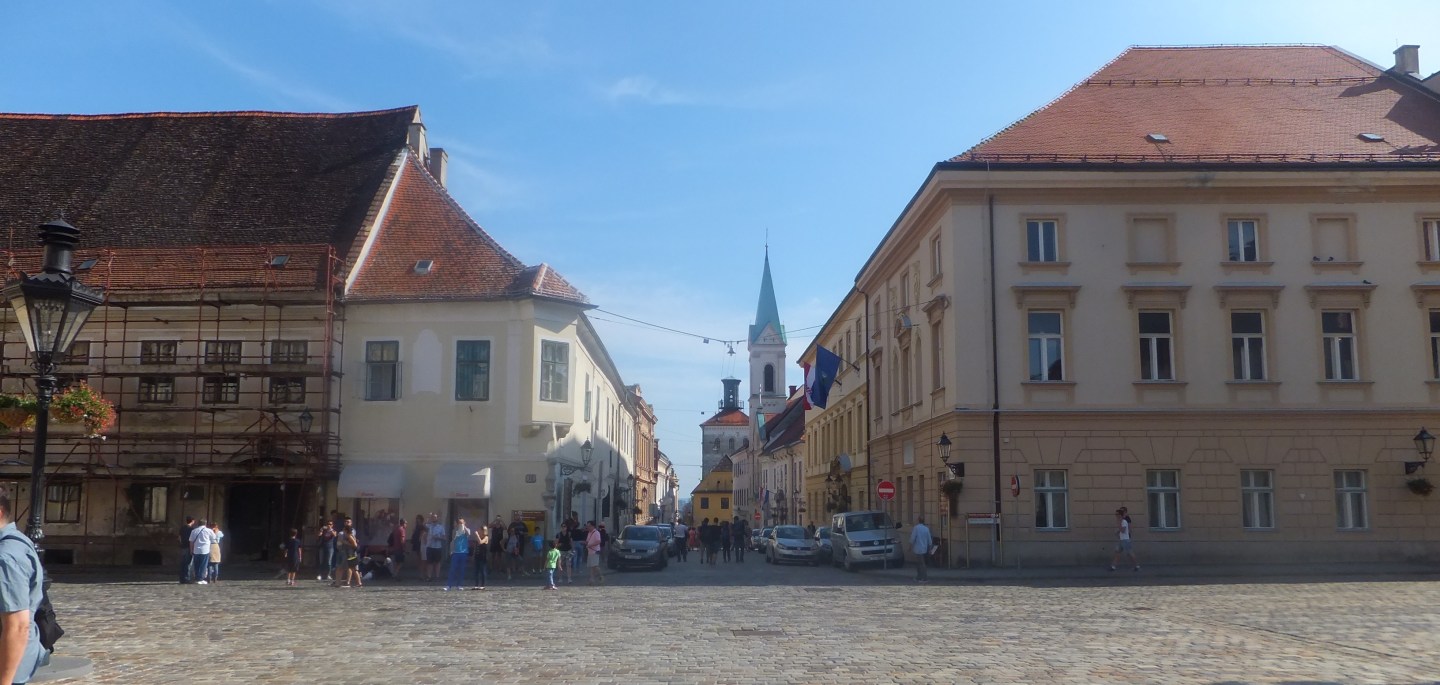 The old city is built on two hills, with the cathedral on top of one hill and the parliament on top of the other. The parliament is on Gornji Grad, which is the upper old town.