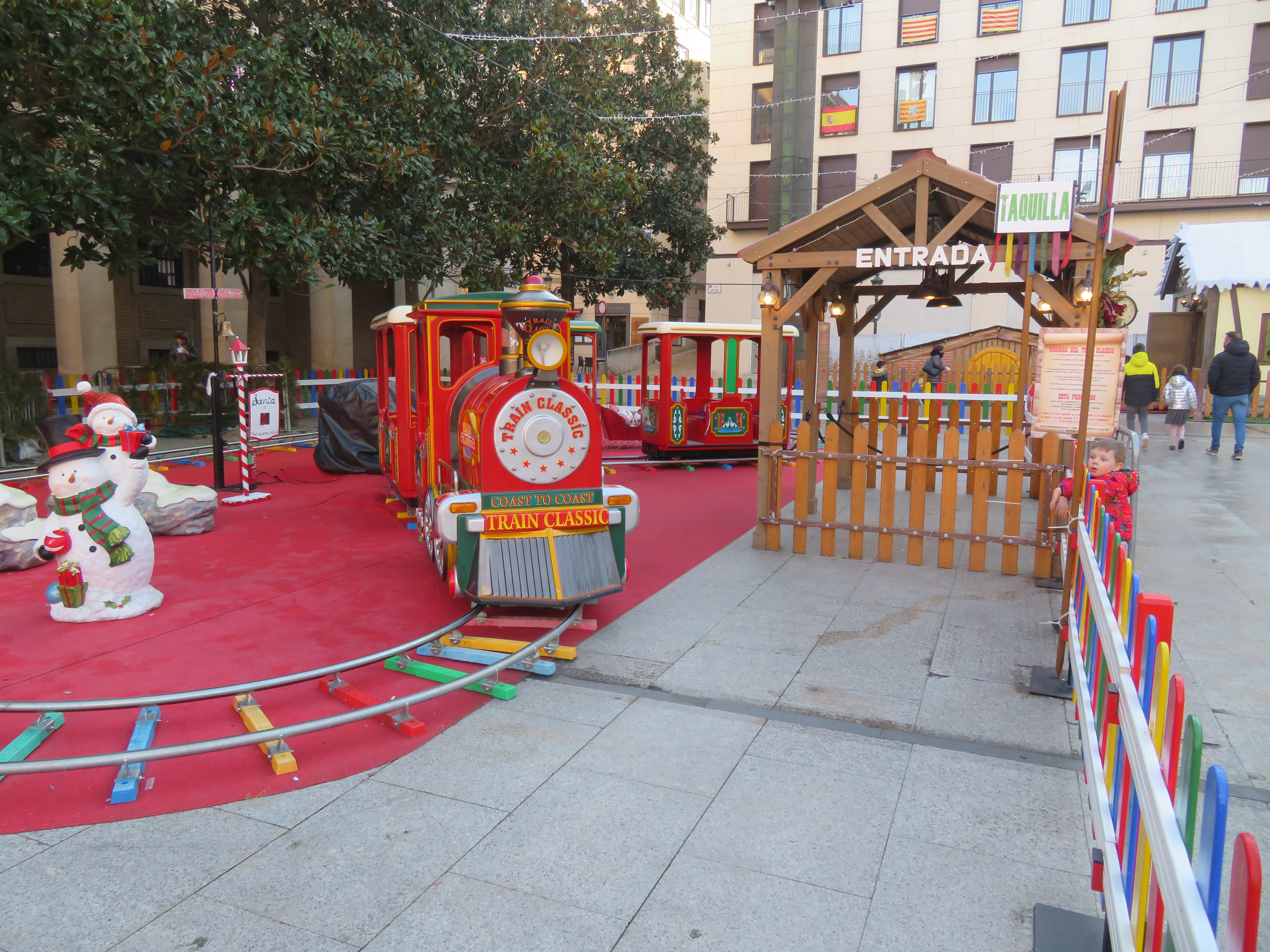 We visited Zaragoza in Twixtmas 2021 and there was a wonderful Christmas market and small fair outside the Basilica, by Hotel Pilar. The market had stalls selling trinkets and local delicacies (yummy churros) and the fair had a merry-go-round and a small train. My son loved these. There was also an area with statues of the nativity that you could walk around.