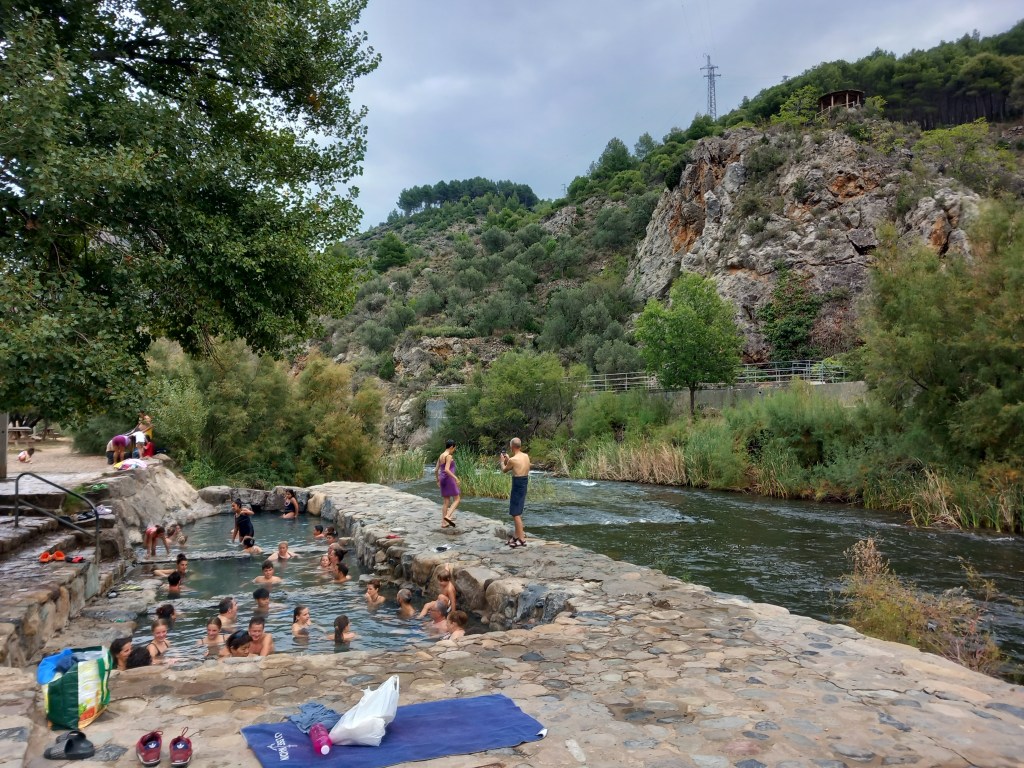 The hot springs in Arnadillo are located on the far side of the village, just next to the river. They are open and free to visit. There´s no facilities – apart from a car park, a picnic area and a cold shower. We had to change under our towels, by the riverside.